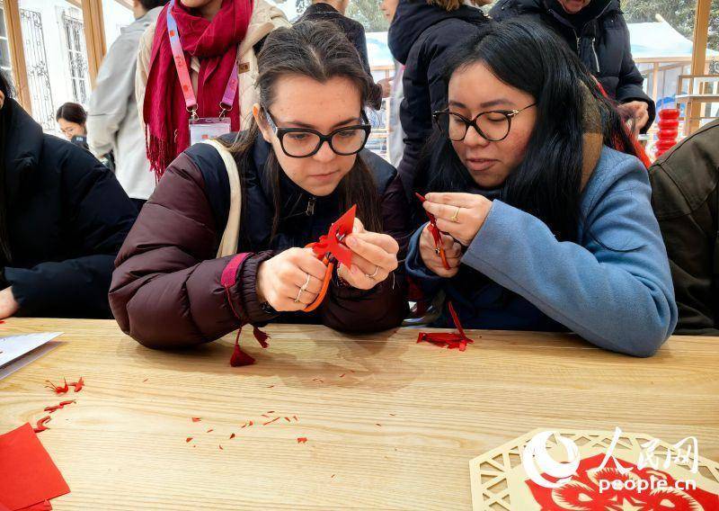外国观众体验剪纸。人民网米兰2月17日电 当地时间2月16日,正值中国传统马年春节,米兰“中国之家”洋溢着浓浓的年味儿。写福字、结绳、拓印、剪纸等中国传统文化项目活动,吸引了众多前来“中国之家”参观的意大利市民和各国观众体验打卡。