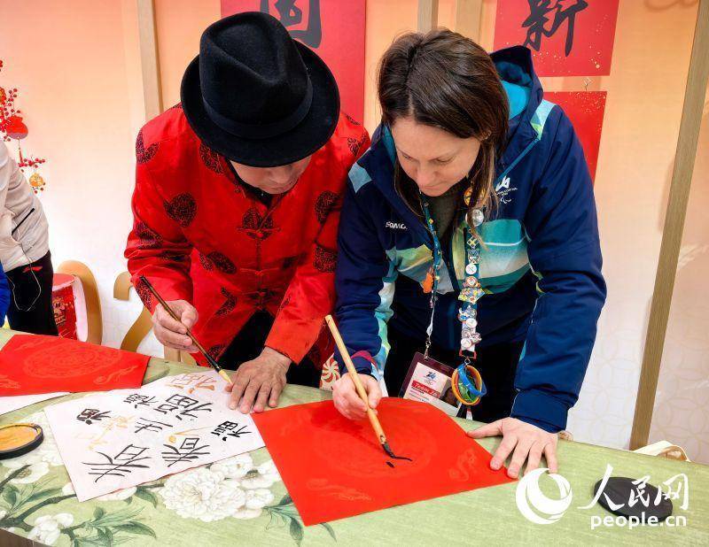 外国观众体验中国书法。