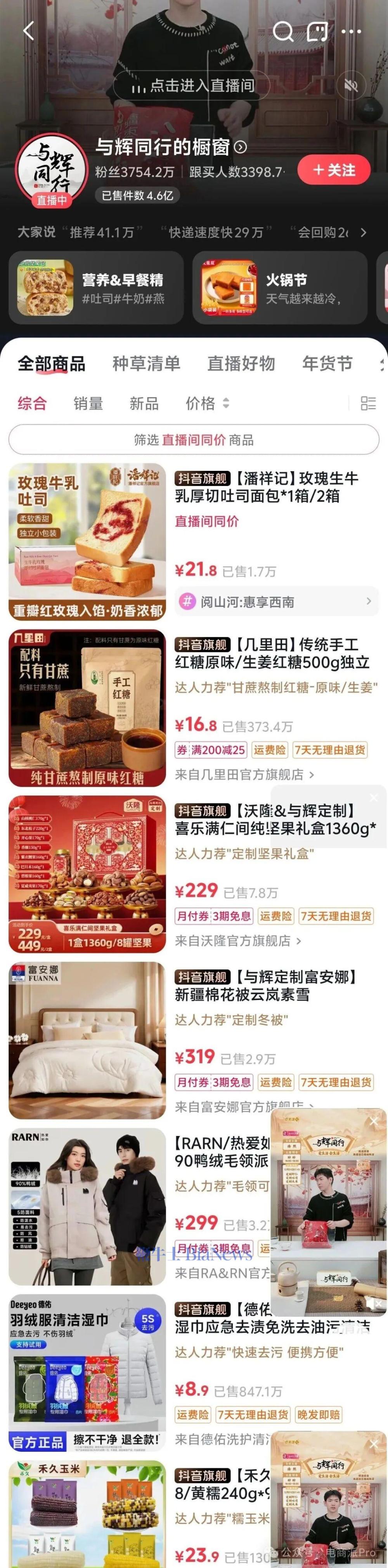 李响查询发展,与辉同行抖音橱窗里近两千件商品中暂无自营产品,大部分都来自外部品牌。在供应链方面,存在明显短板。