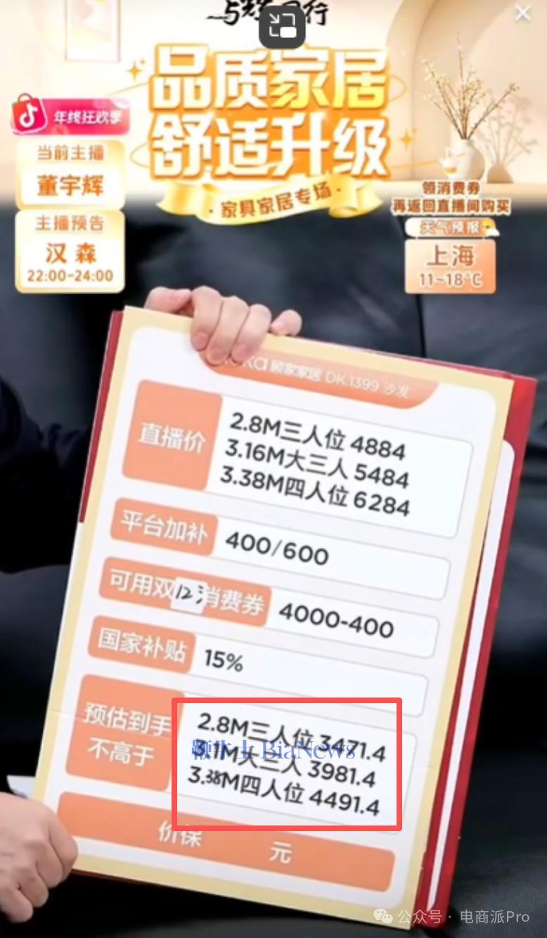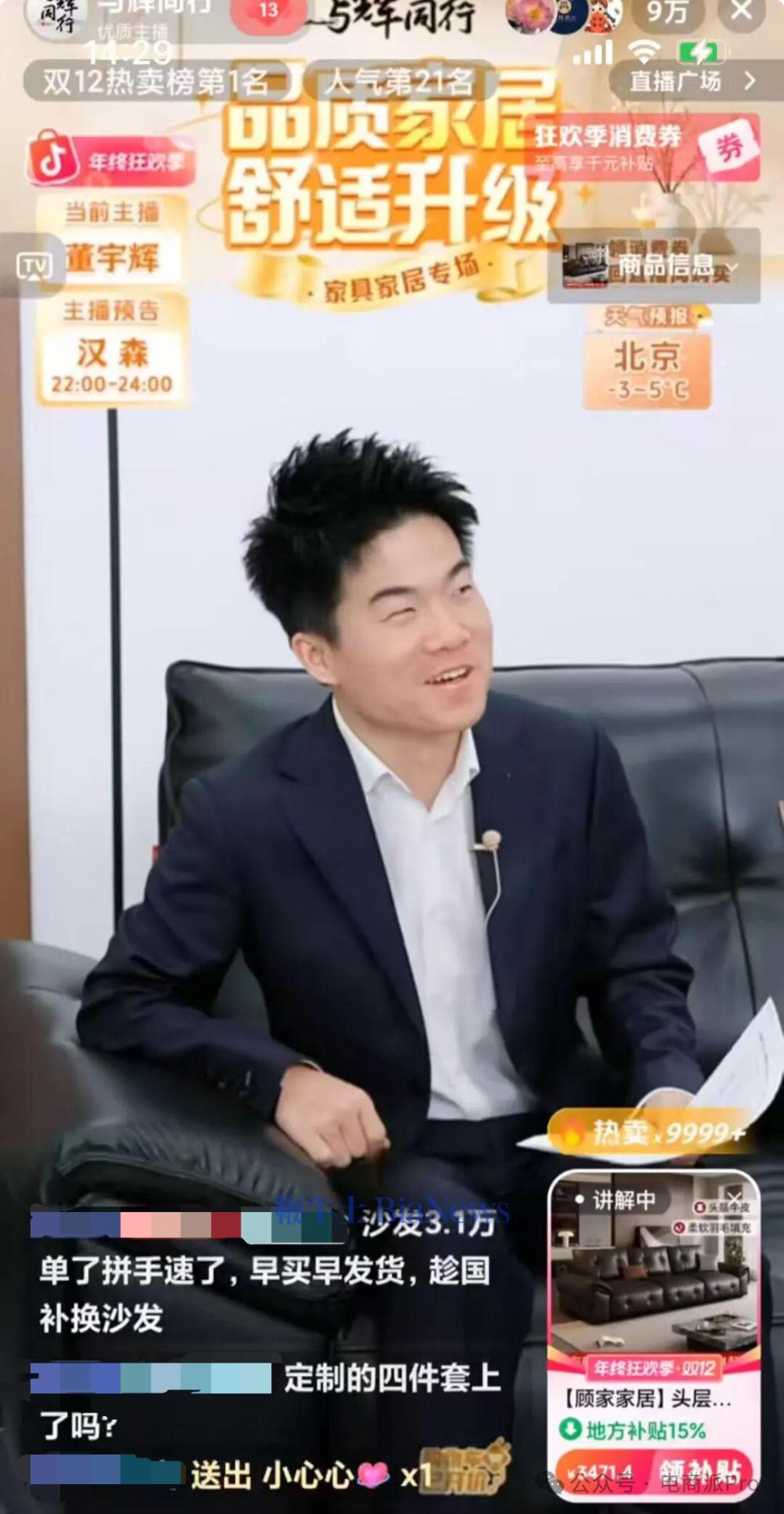 不久前,其“与辉同行”直播间开启家居专场,一举拿下3.56亿元的销售额,其中顾家家居的一款沙发单品,成交额更是突破1亿元。